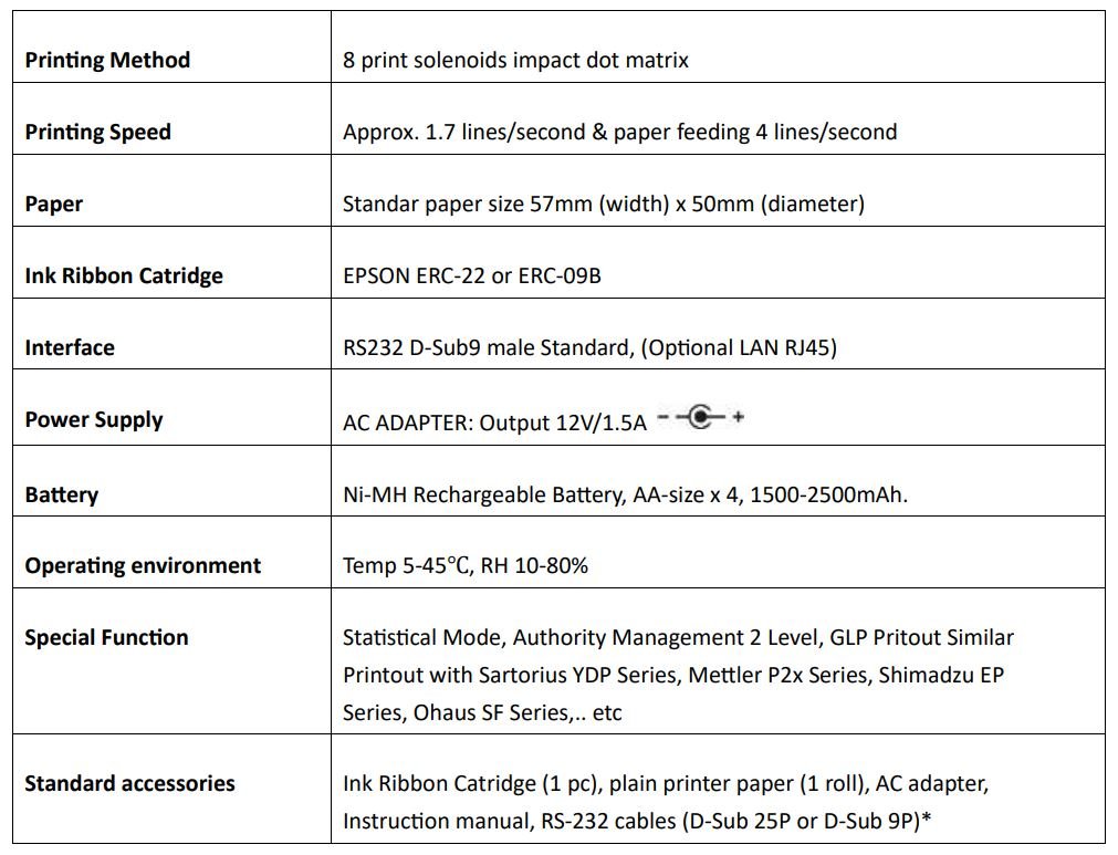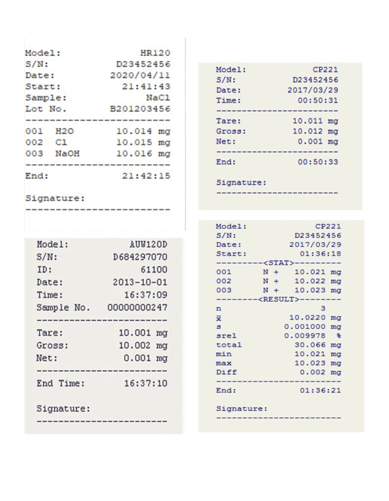Single printing or Tare, Gross, Net mode printing function. Editable Header & Footer: Sample name, Batch Number, Signature ..etc Can be inputted & printed